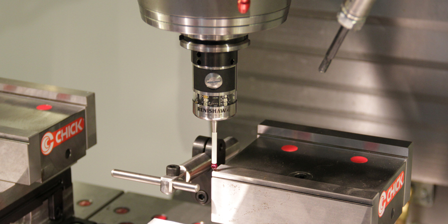 Using the latest wireless strain gauge based probing systems from Renshaw, machine set ups are completed quickly and accurately. The flexibility provided by these systems allows for support of customer schedule changes by minimizing the time and costs associated with set up changes and production run breaks for small lot quick turn needs.